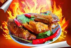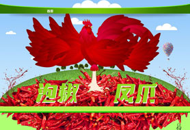 以金鸡独立,开门大红为创意进行表现泡椒凤爪,绘制一个矢量大红公鸡,精神的站在辣椒堆里,配合辣椒来表现整个设计主题从而突出产品,其中绘制矢量元素,控制创意输出与画面感的关系是主要掌握内容。